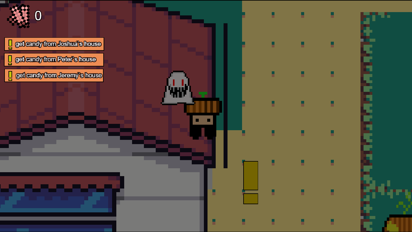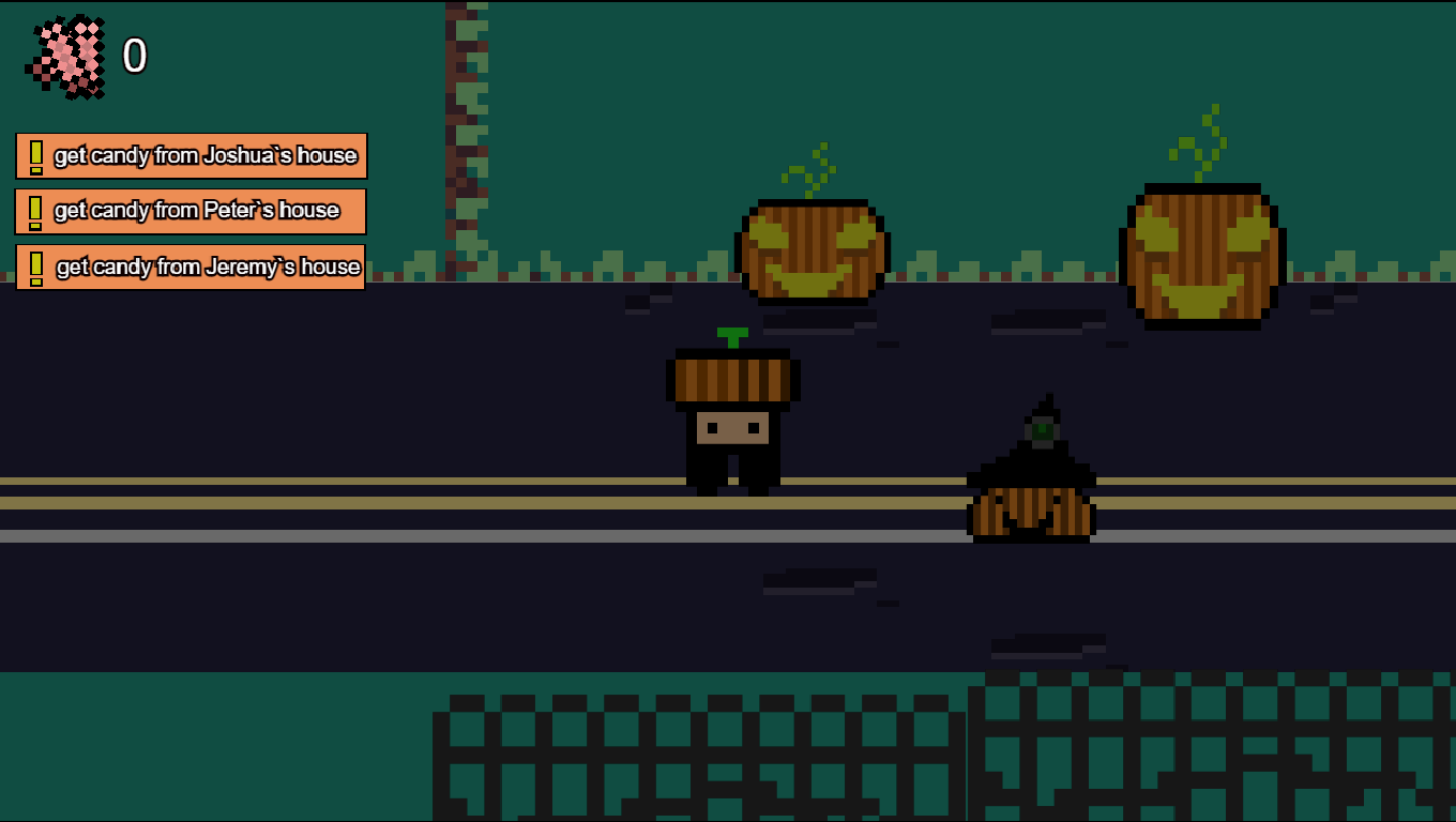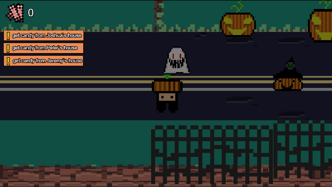 GameJamOb:knock on doors and ask for sweets until you collect a certain amount and try to convince some angry resisents